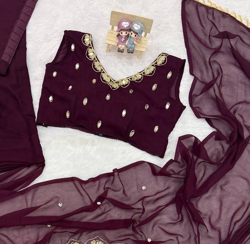 | Product Name | Plum Color Embroidery,Real Mirror & Pearls Work Faux Georgette Ready To Wear Saree | |
