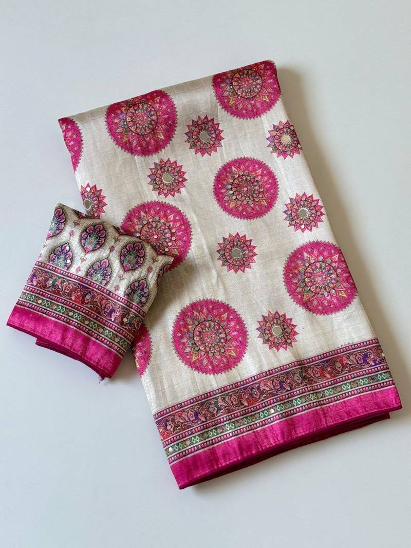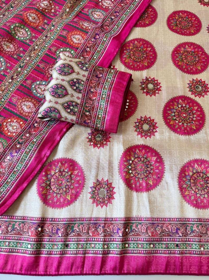| Product Name | Rani Pink Color Digital Printing With Original Mirror Work Dola Silk Saree | |