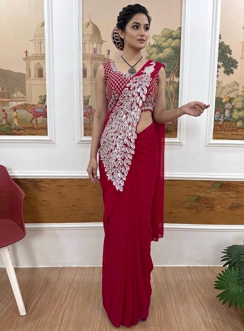 | Product Name | Rani Pink Color Embroidered,Thread & Sequins Work Work Faux Georgette Ready To Wear Saree | |