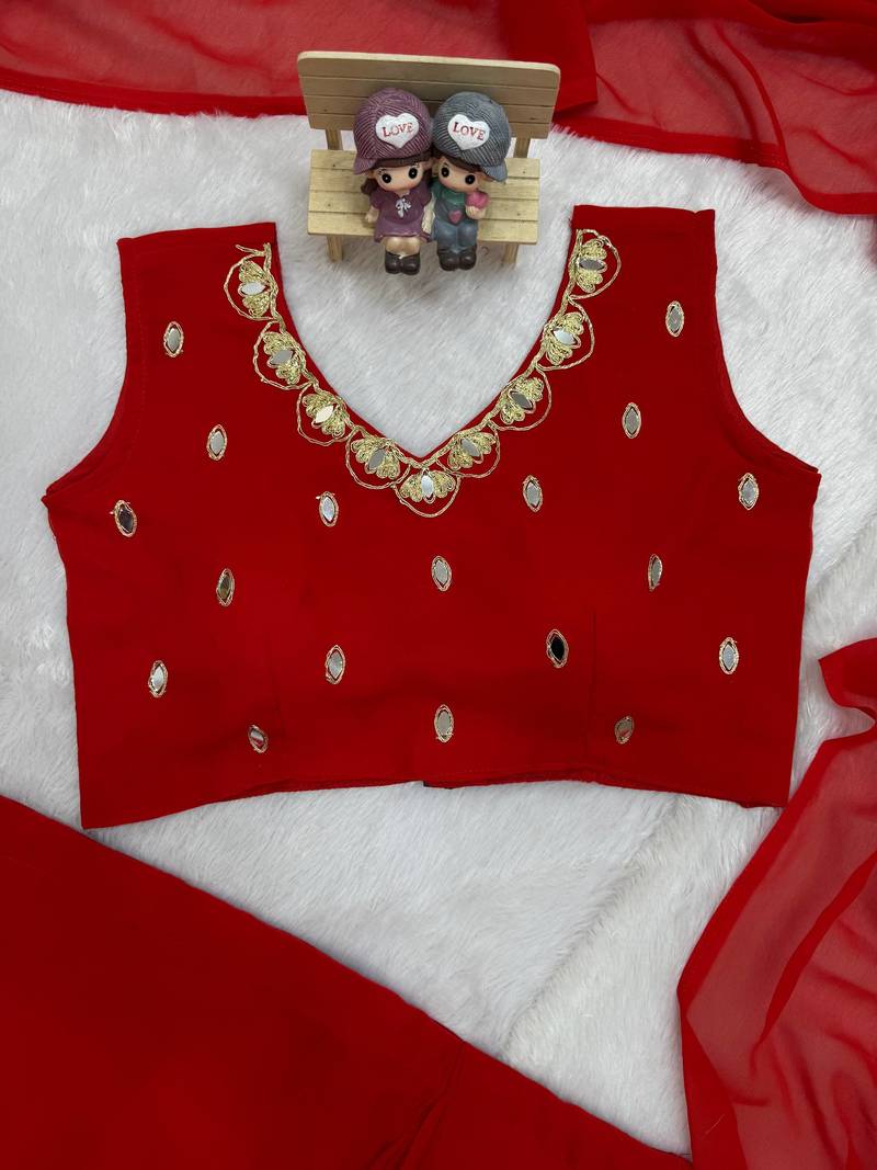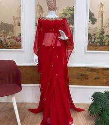 | Product Name | Red Color Embroidery,Real Mirror & Pearls Work Faux Georgette Ready To Wear Saree | |