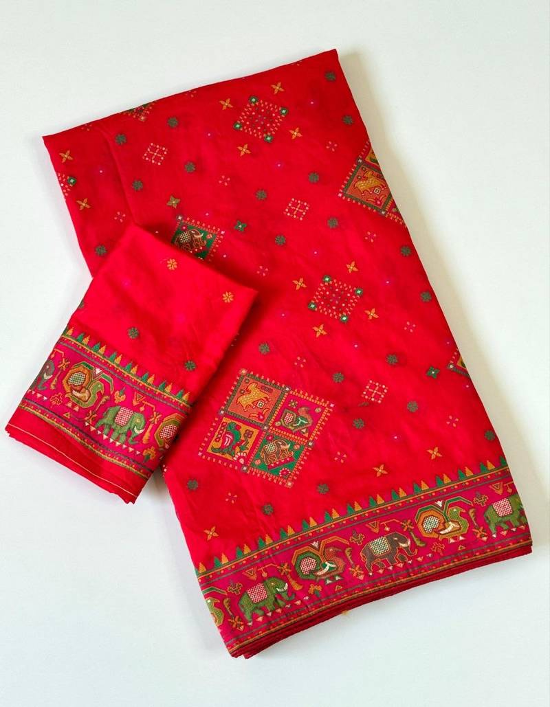 | Product Name | Red Color Minakari Jaqurad Weaving Work Pasmina Silk Saree | |