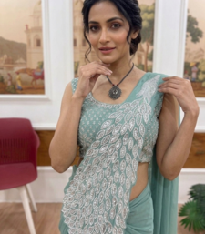 | Product Name | Sea Green Color Embroidered,Thread & Sequins Work Work Faux Georgette Ready To Wear Saree | |
