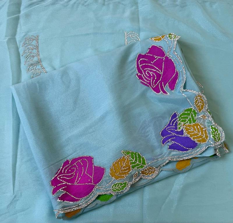 | Product Name | Sky Blue Color Zarkhan Diamond Flowers Outing Work Georgette Saree | |