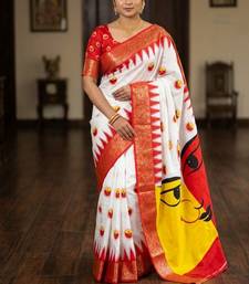 | Product Name | White Color Digital Printing Durga Pooja Work Lichi Silk Saree | |