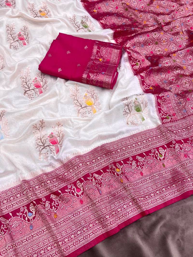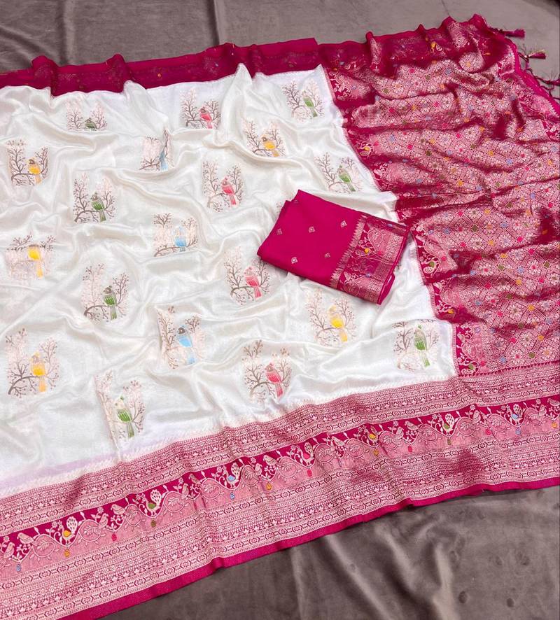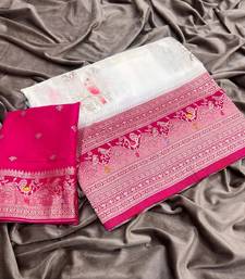 | Product Name | White Color Jari Jaqurad Weaving With Hand Chap Daying Georgette Saree | |