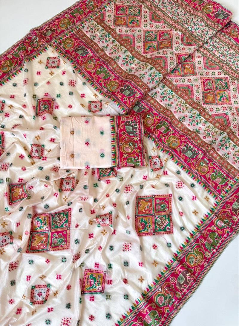 | Product Name | White Color Minakari Jaqurad Weaving Work Pasmina Silk Saree | |