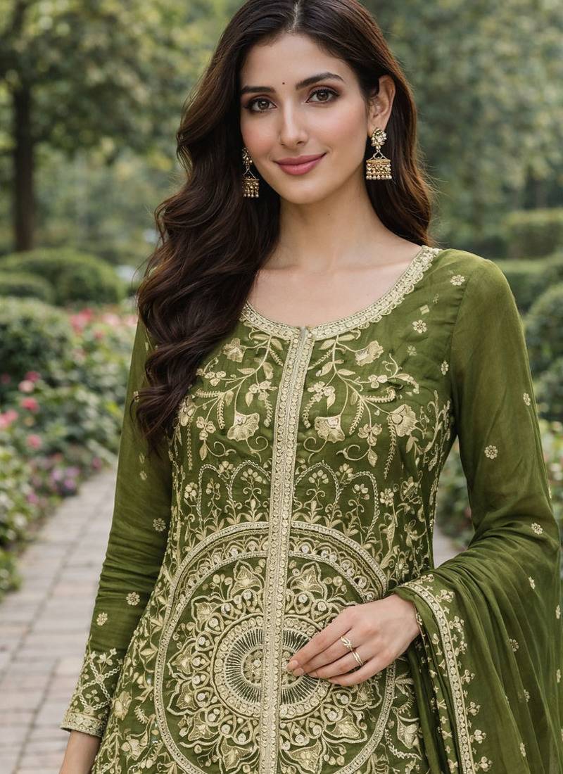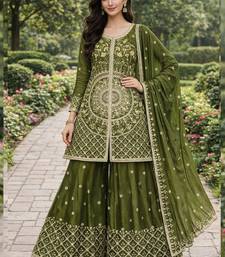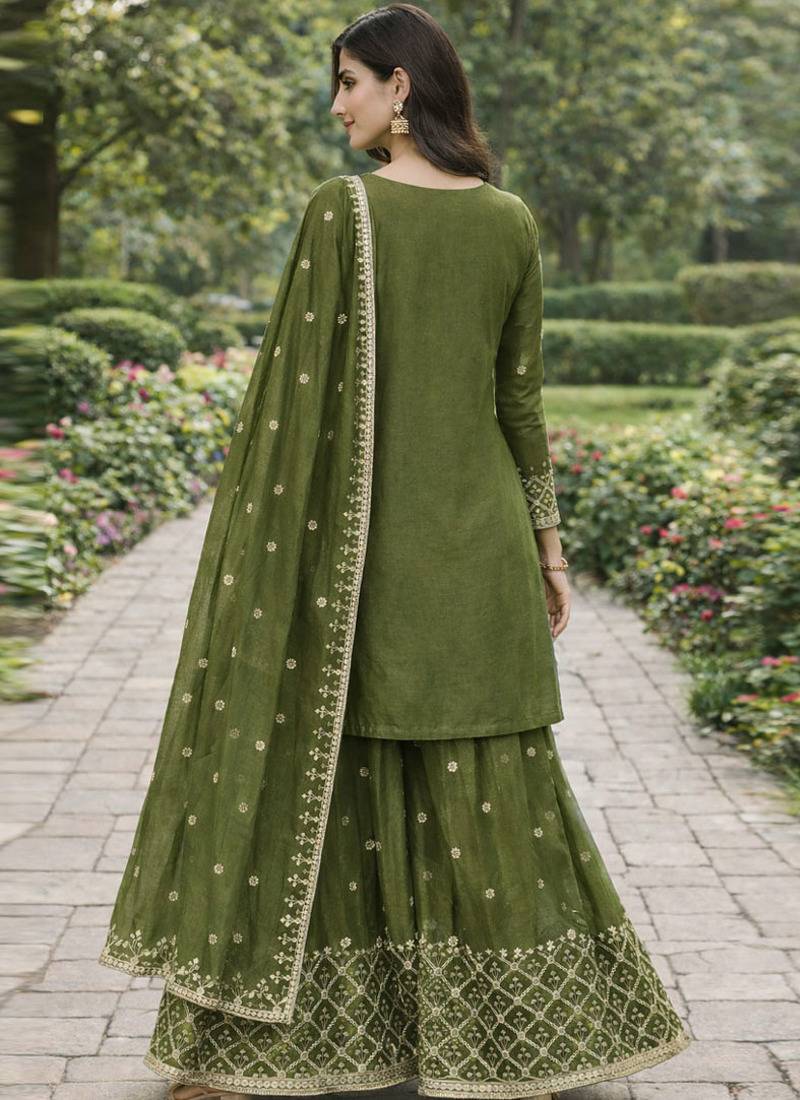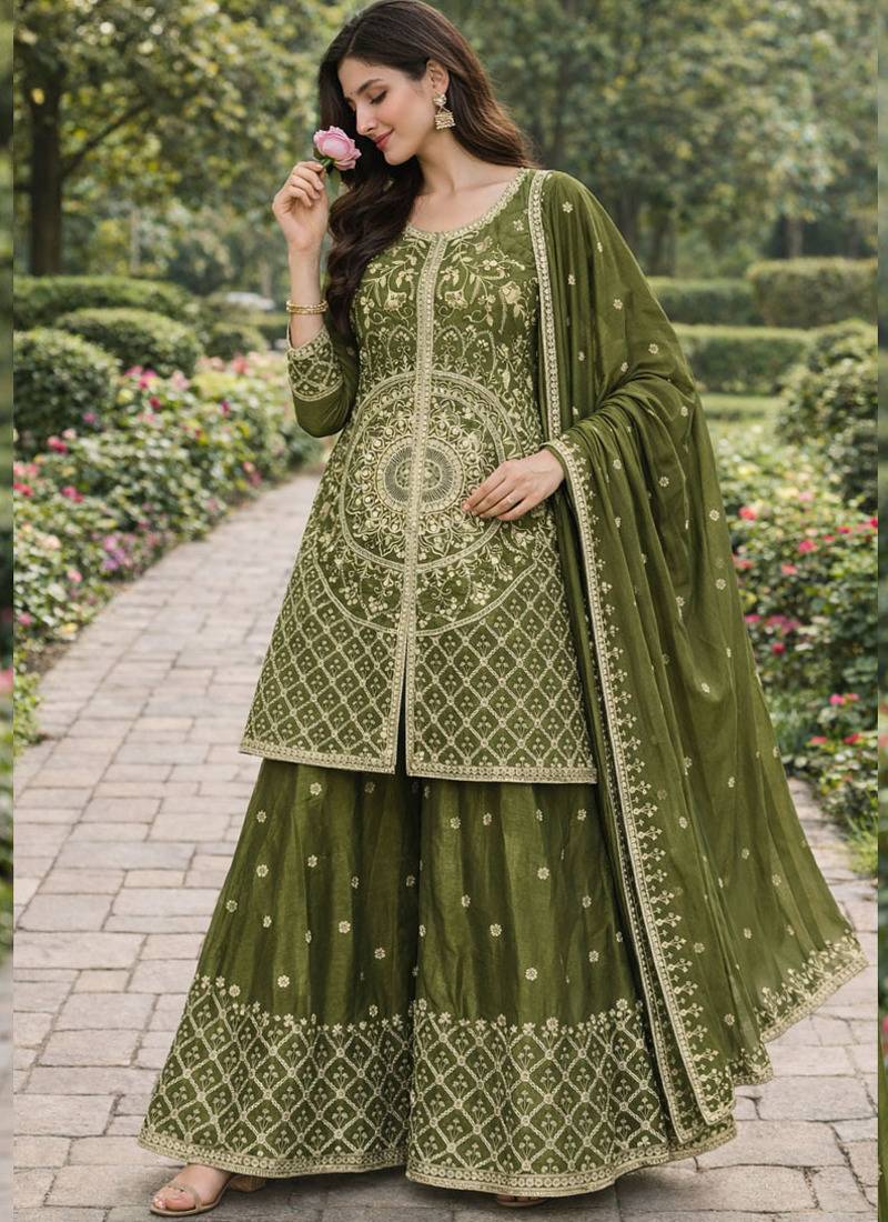 Product Name Mehendi Chinon Silk Sequence Embroidered Sharara Suit