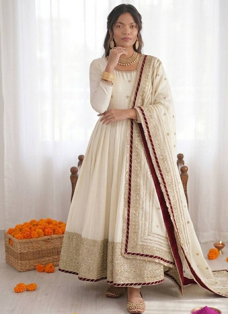 | Product Name | Off White Chinon Silk Thread Sequence Anarkali Suit | |