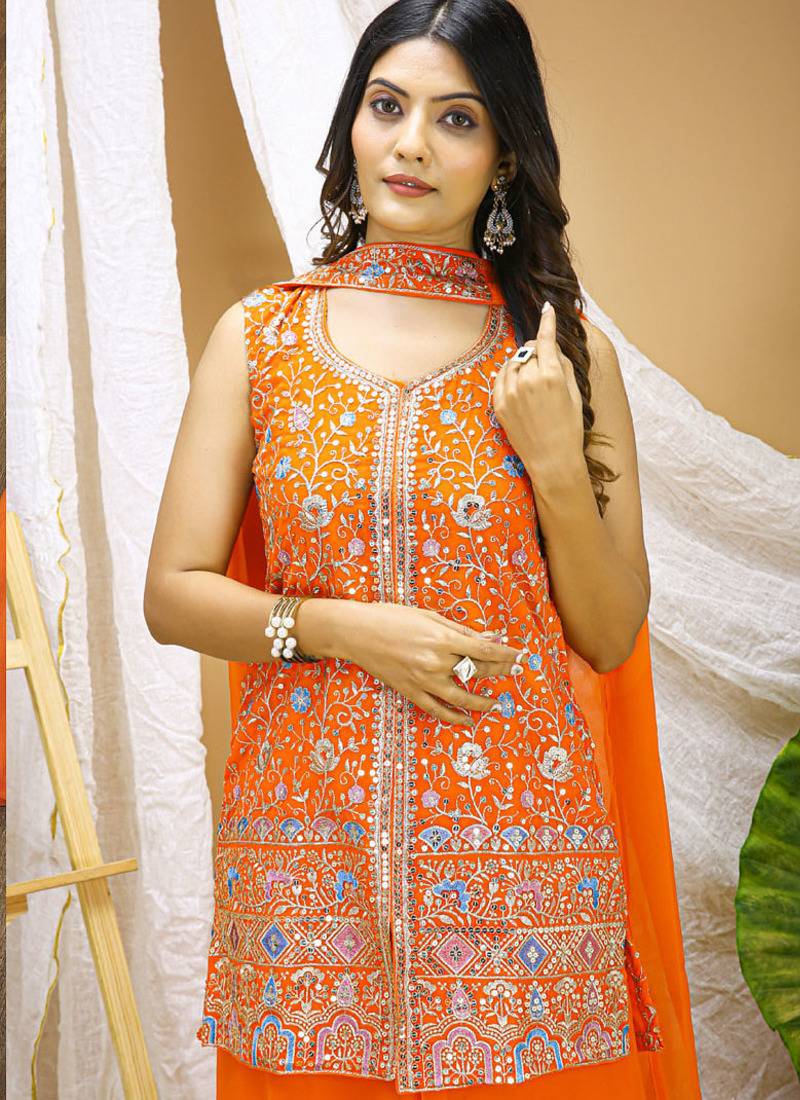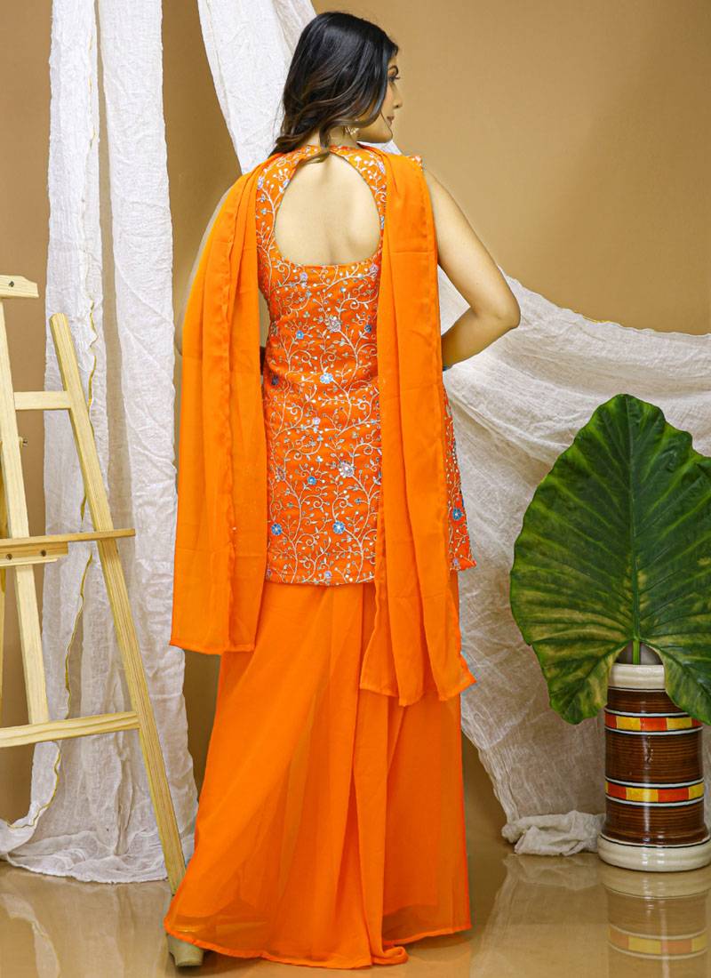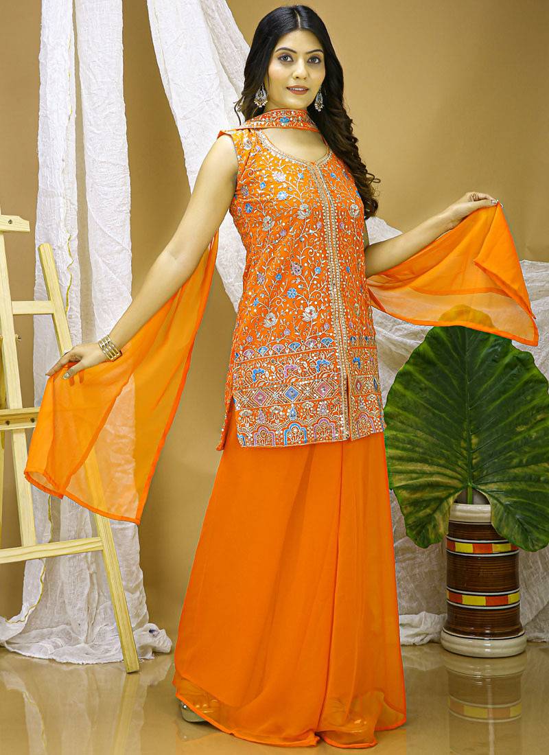 | Product Name | Orange Georgette Sequence Embroidered Sharara Suit | |