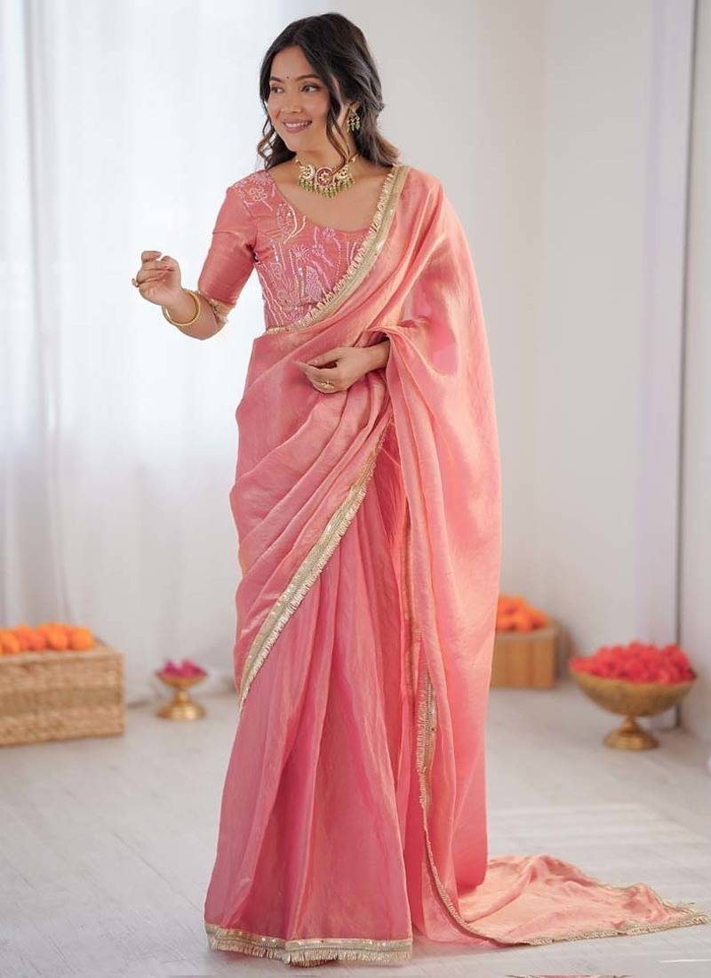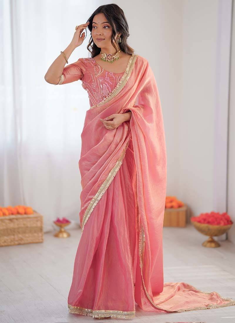 | Product Name | Peach Golden Shaded Fendy Silk Ready To Wear Saree | |