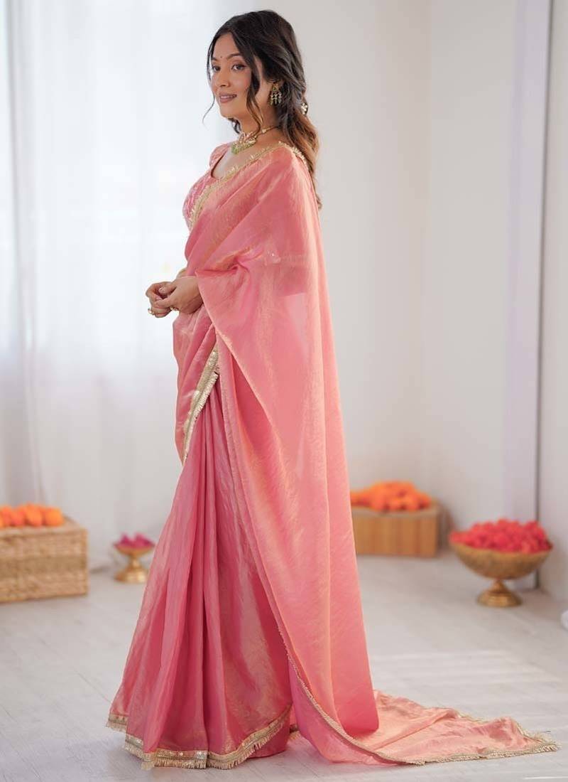 | • | Saree | : | Color- Peach / Fabric- Organza |