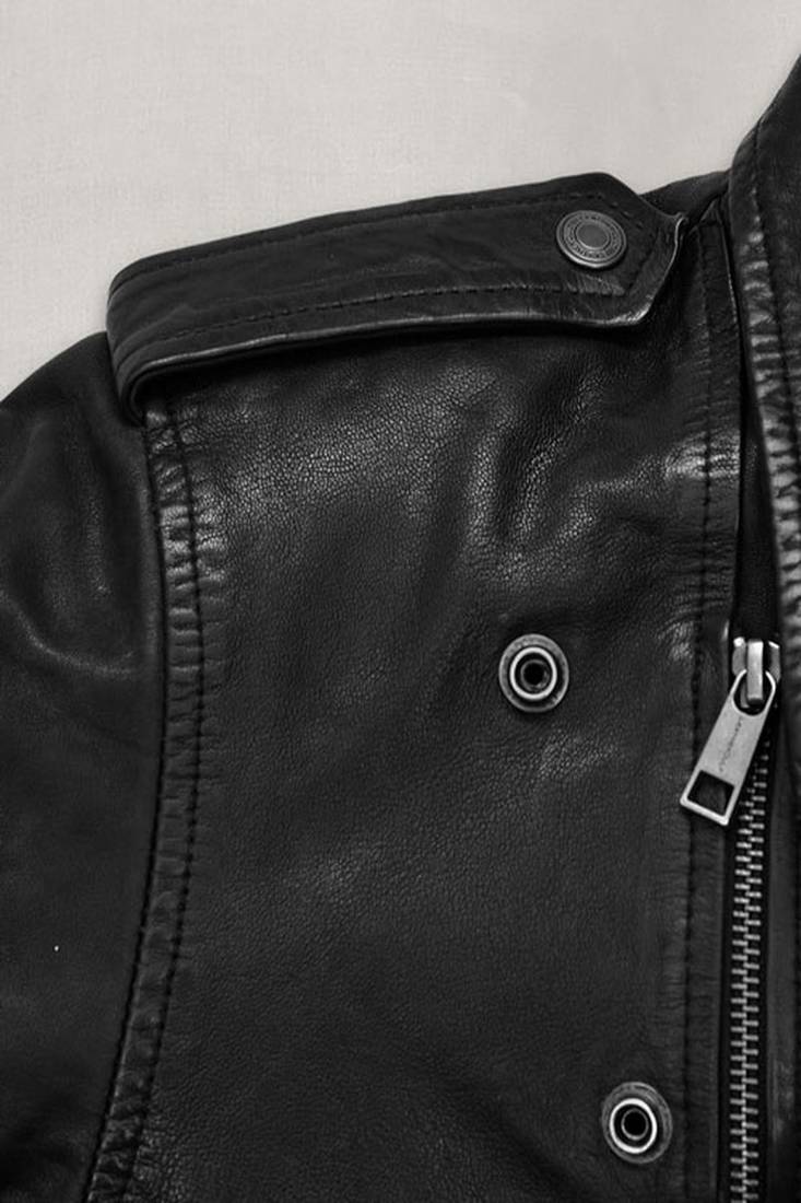 Men's classic side-lace motorcycle leather jacket. action black. zip-out liner,