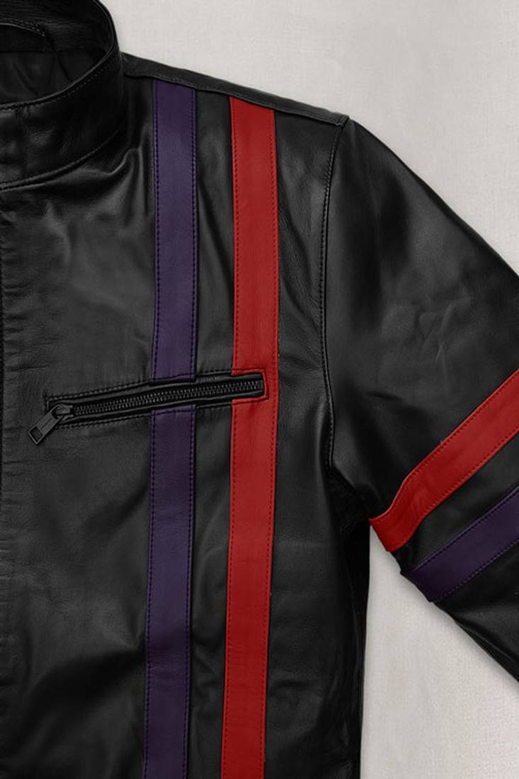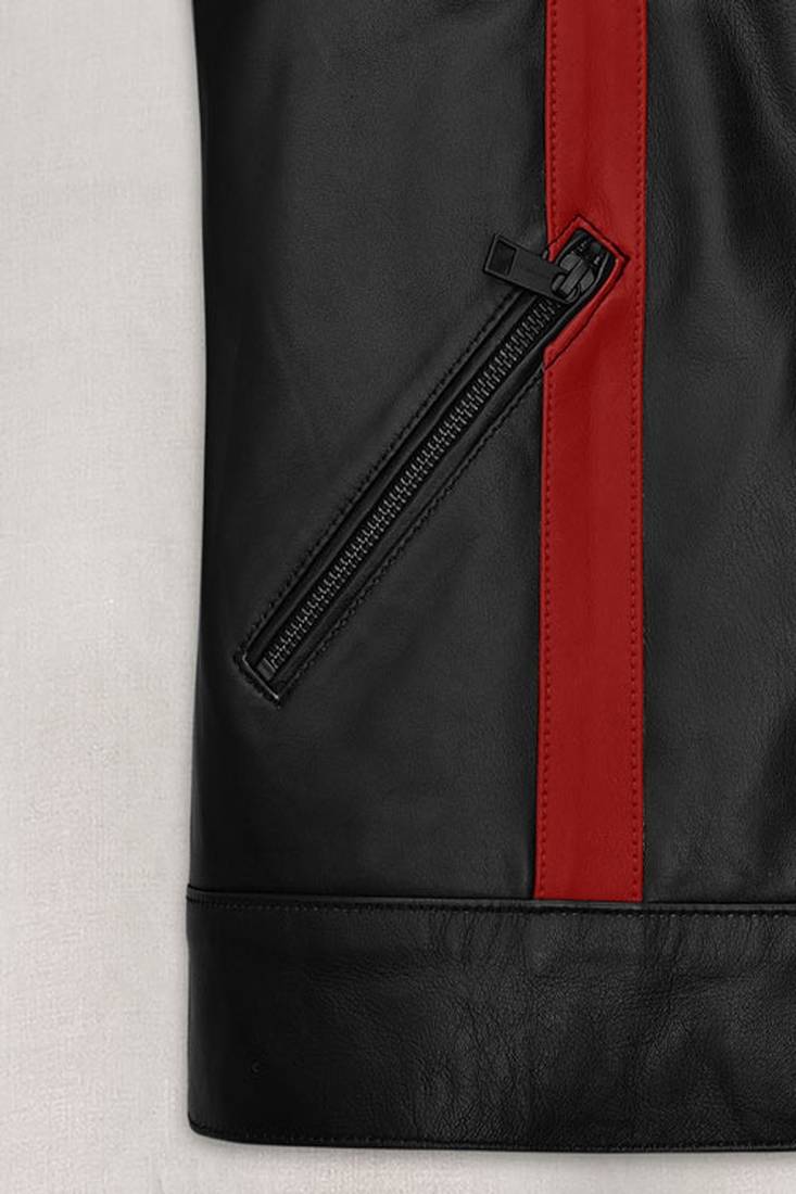 | Product Name | Men’s Black & Red Leather Biker Jacket – Slim Fit Racer Stripe Design | |