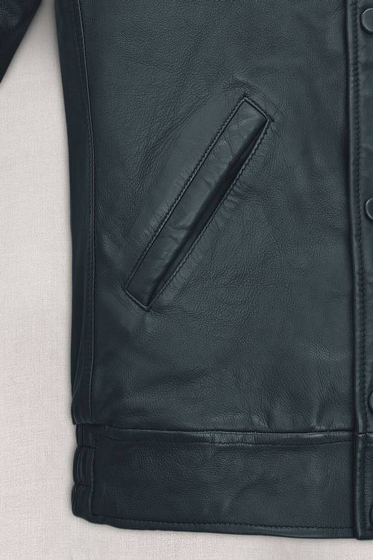 | Product Name | Men’s Blue Leather Jacket – Bomber Fit Trucker Button Front Outerwear | |