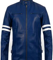 | Product Name | Men’s Blue & White Leather Biker Jacket – Slim Fit Racer Stripe Design | |