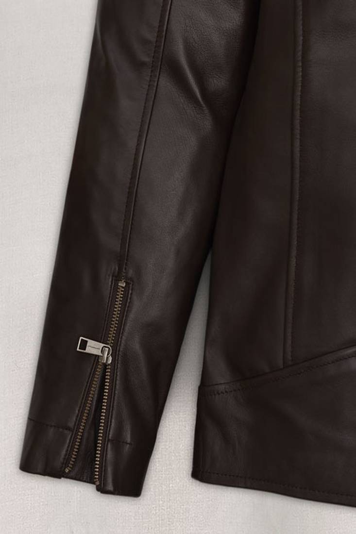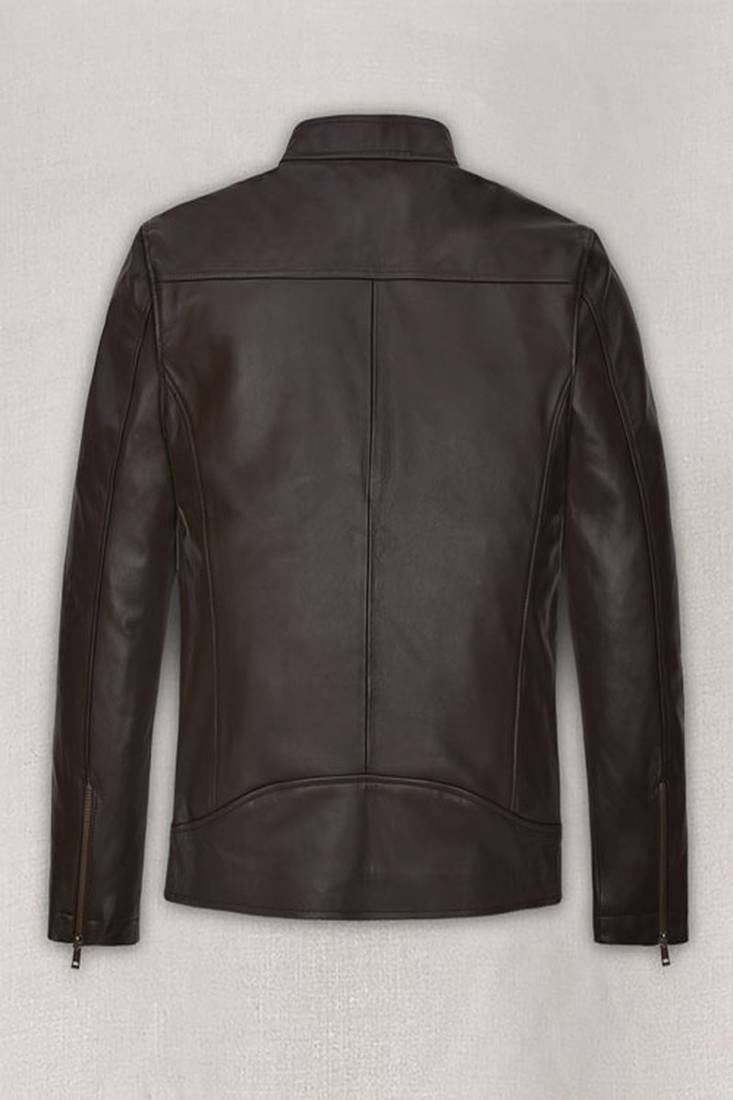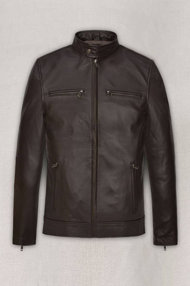 | Product Name | Men’s Dark Brown Genuine Leather Jacket – Slim Fit Stand Collar Cafe Racer Style | |