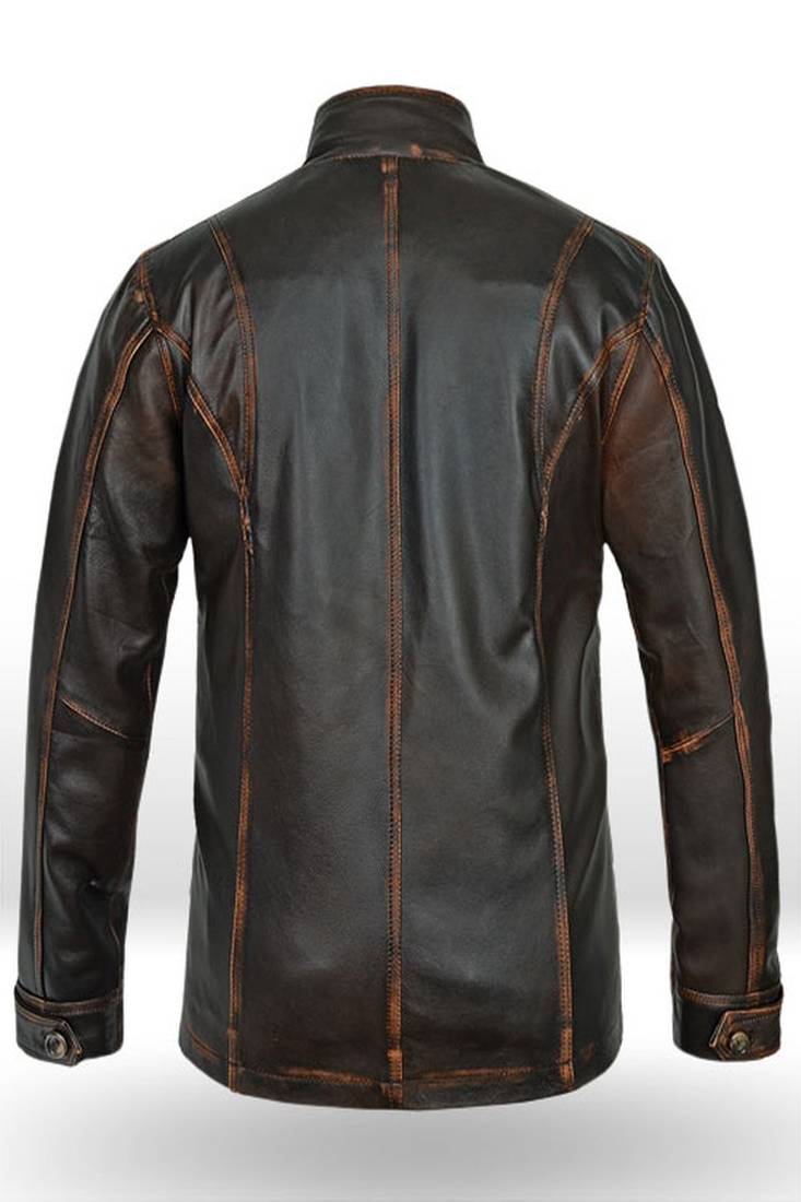 | Product Name | Men’s Dark Brown Genuine Leather Jacket – Slim Fit Stand Collar Cafe Racer Style With Four Pokets | |