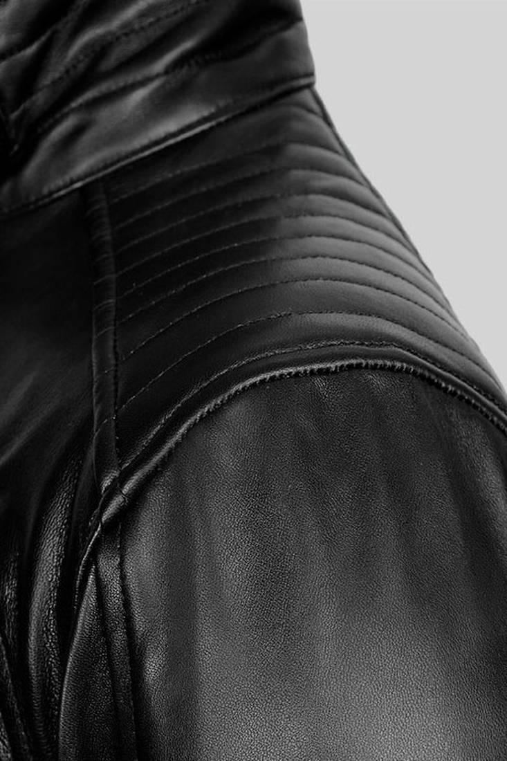 Qawach men's genuine black vintage café racer biker jacket lambskin jacket