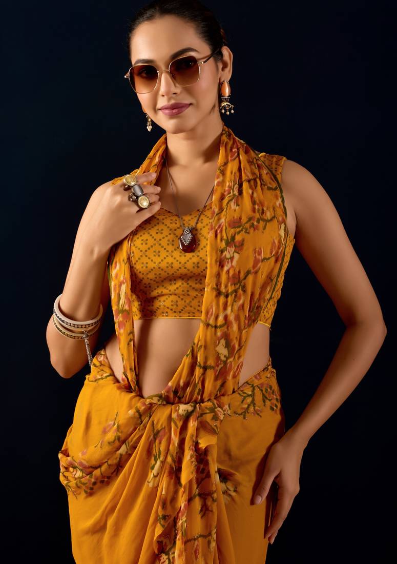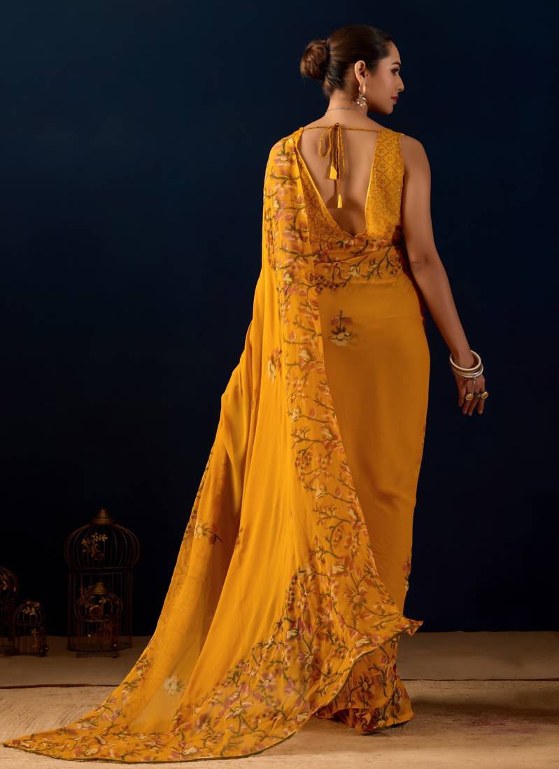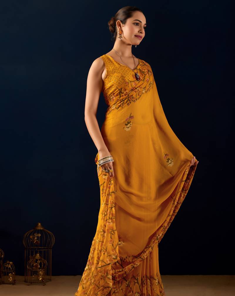 | Product Name | Yellow Digital Floral Print Chiffon Festive Ethnic Saree With Blouse | |