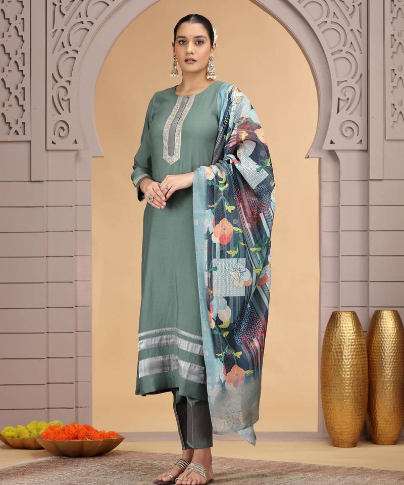 | Product Name | Green Chiffon Kurta Set With Loose Pant & Dupatta | |