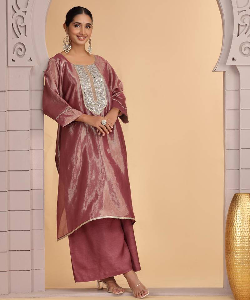 | Product Name | Magenta Orgenza Shimmer A Line Loose Fit Kurta Set With Palazo | |