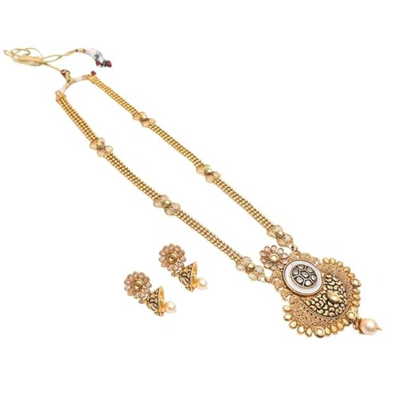 | Product Name | Dazzling Pure Copper Gold Tone Black Meenakari Work Necklace Set | |