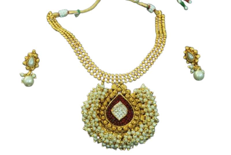 | Product Description | This Beautiful Maroon Colour Necklace Set Studded With American Diamond Increase The Charm Of The Necklace. This Copper Necklace Set Can Be Worne With All Your Traditional & Ceremonial Costumes. |