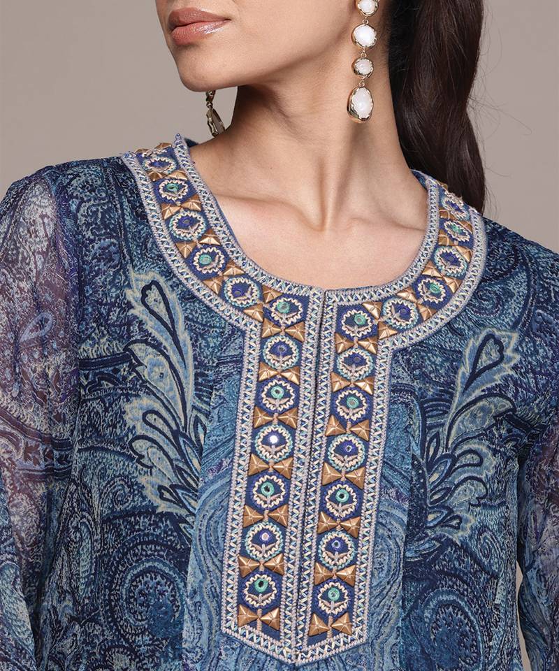 | Product Name | Blue Printed Chiffon Sharara Set | |