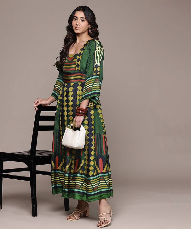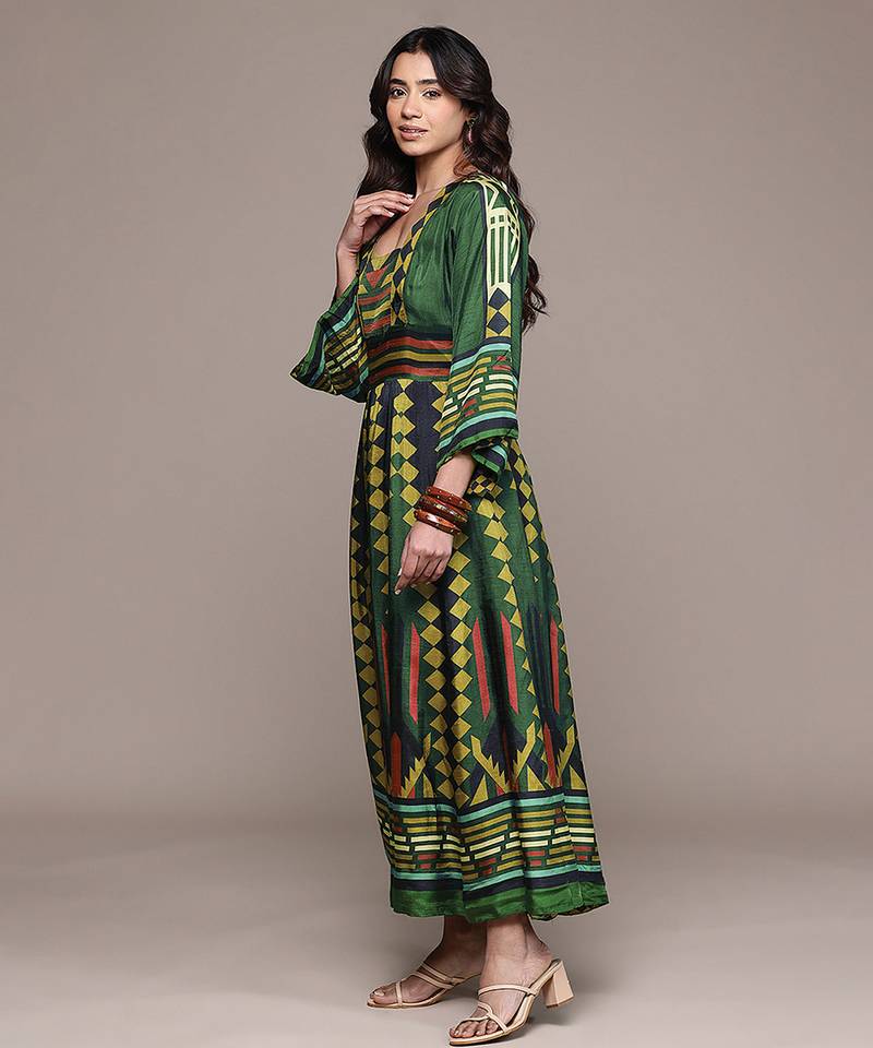 | Product Description | This Green Printed Viscose Gown Features A Flowy Silhouette With Elegant Patterns. The Soft Fabric Ensures Comfort, While The Graceful Design Adds Charm. Perfect For Casual And Semi Formal Occasions, It Offers A Stylish And Modern Look With Effortless Elegance.