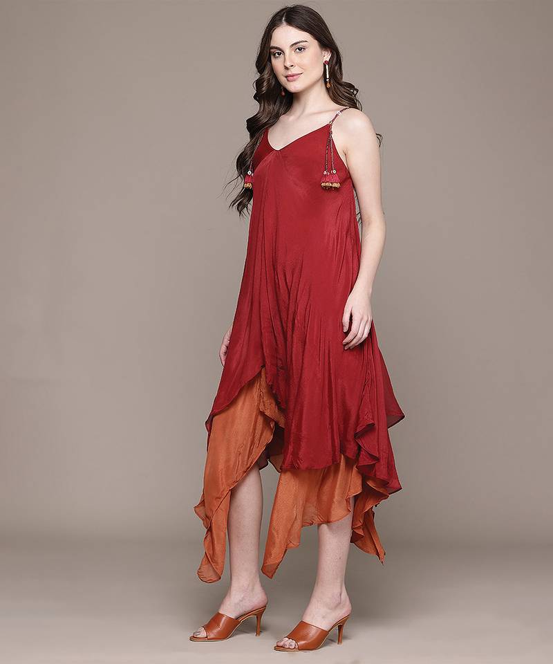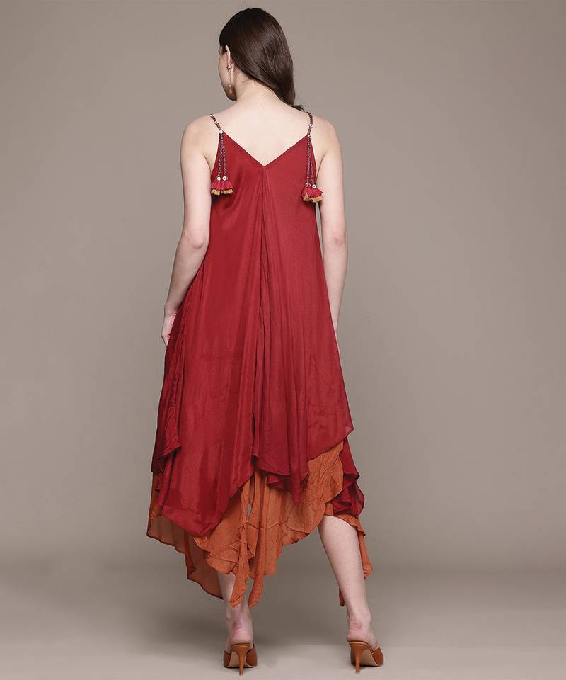 | Product Description | This Red Chinon Indo Western Dress Blends Traditional Elements With A Modern Silhouette. The Flowy Fabric Ensures Comfort, While The Vibrant Color Enhances Its Festive Charm. Perfect For Parties And Special Occasions, It Offers A Bold And Stylish Fusion Look.