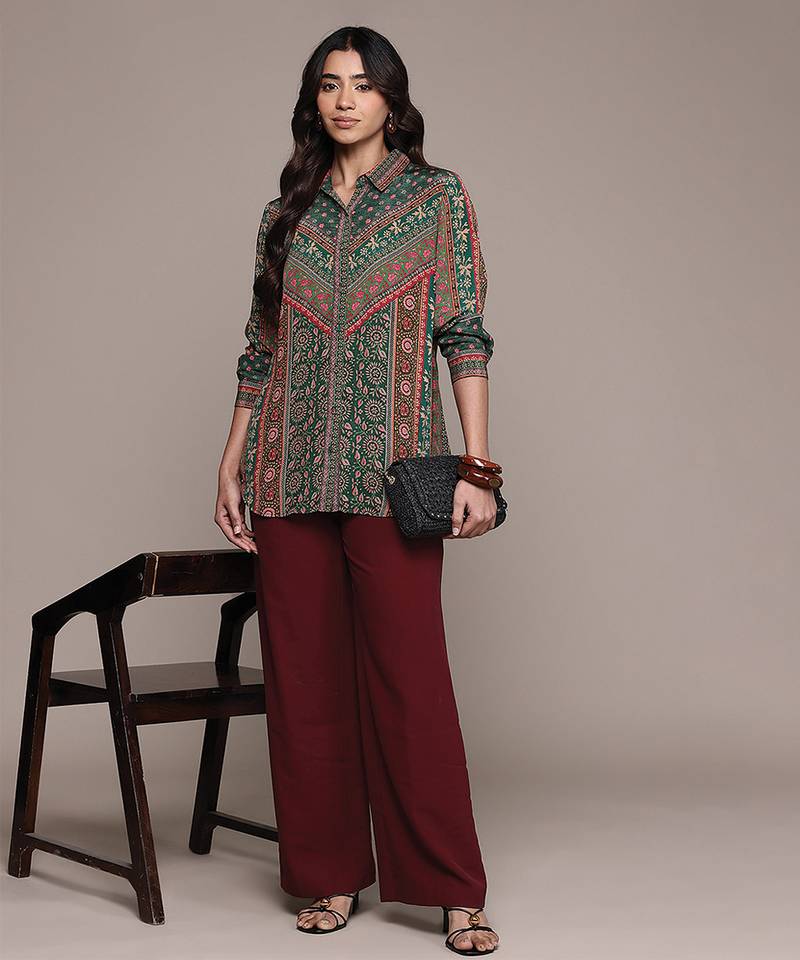 | Product Name | Teal Printed Crepe Shirt | |