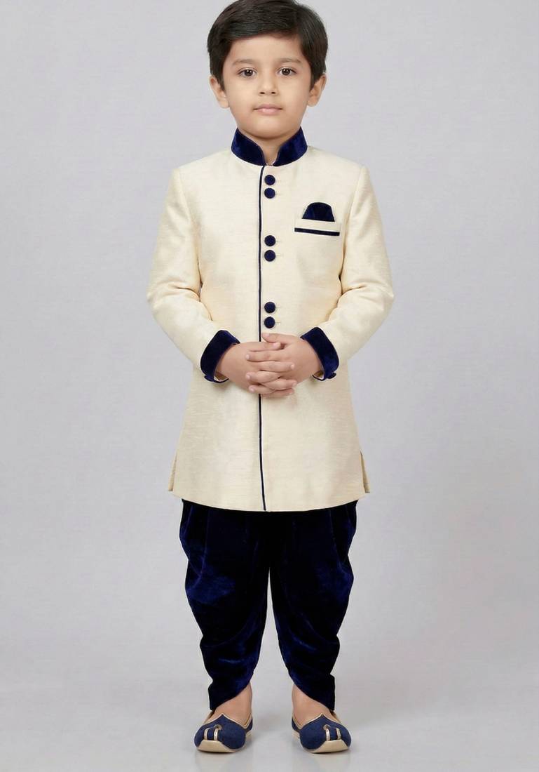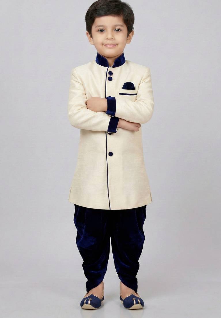 | Product Name | Beige Festive Wear Designer Art Dupion Silk Boys Indo Western Dress | |