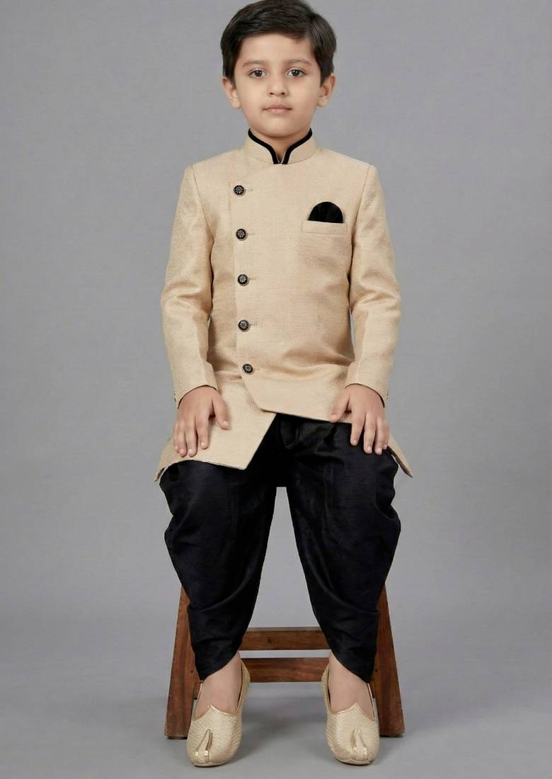 | Product Name | Beige Festive Wear Designer Art Dupion Silk Boys Indo Western Dress | |