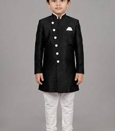 Black festive wear designer art dupion silk boys-indo-western-dress
