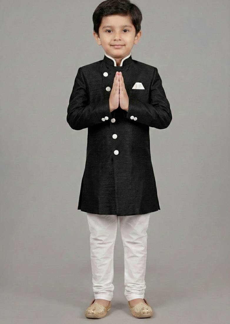 | Product Name | Black Festive Wear Designer Art Dupion Silk Boys Indo Western Dress | |