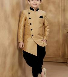 Brown festive wear designer art dupion silk boys-indo-western-dress