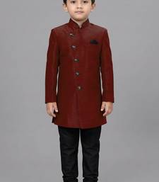 Maroon festive wear designer art dupion silk boys-indo-western-dress