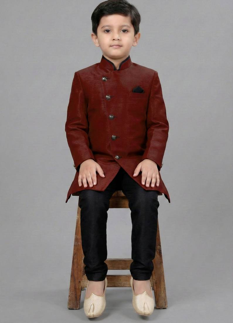 | Product Name | Maroon Festive Wear Designer Art Dupion Silk Boys Indo Western Dress | |
