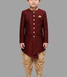 Maroon festive wear designer art dupion silk boys-indo-western-dress