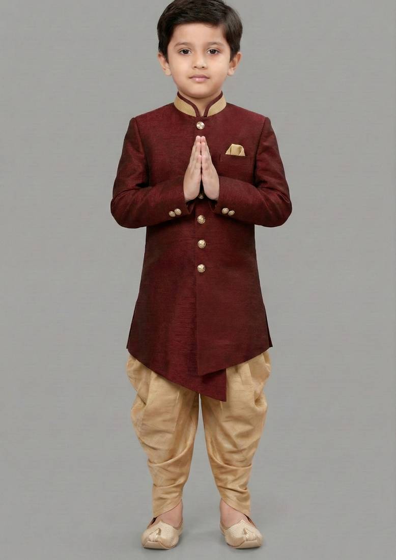 | Product Name | Maroon Festive Wear Designer Art Dupion Silk Boys Indo Western Dress | |