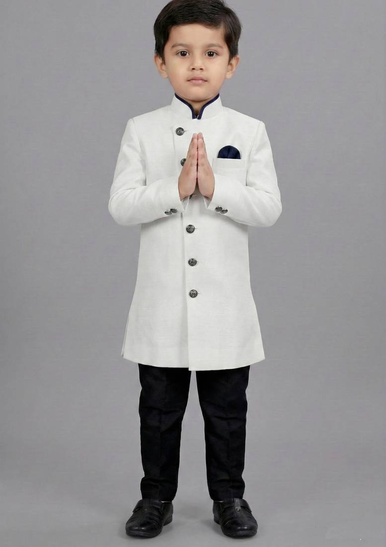| Product Name | White Festive Wear Designer Art Dupion Silk Boys Indo Western Dress | |