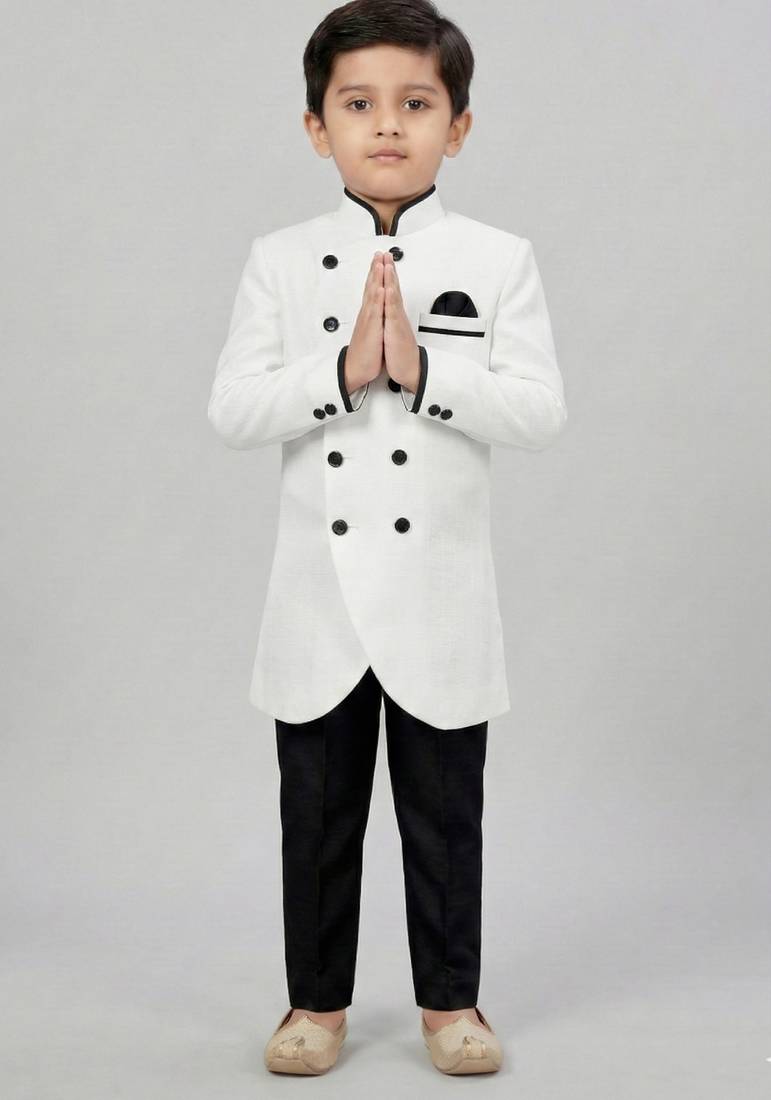 | Product Name | White Festive Wear Designer Art Dupion Silk Boys Indo Western Dress | |
