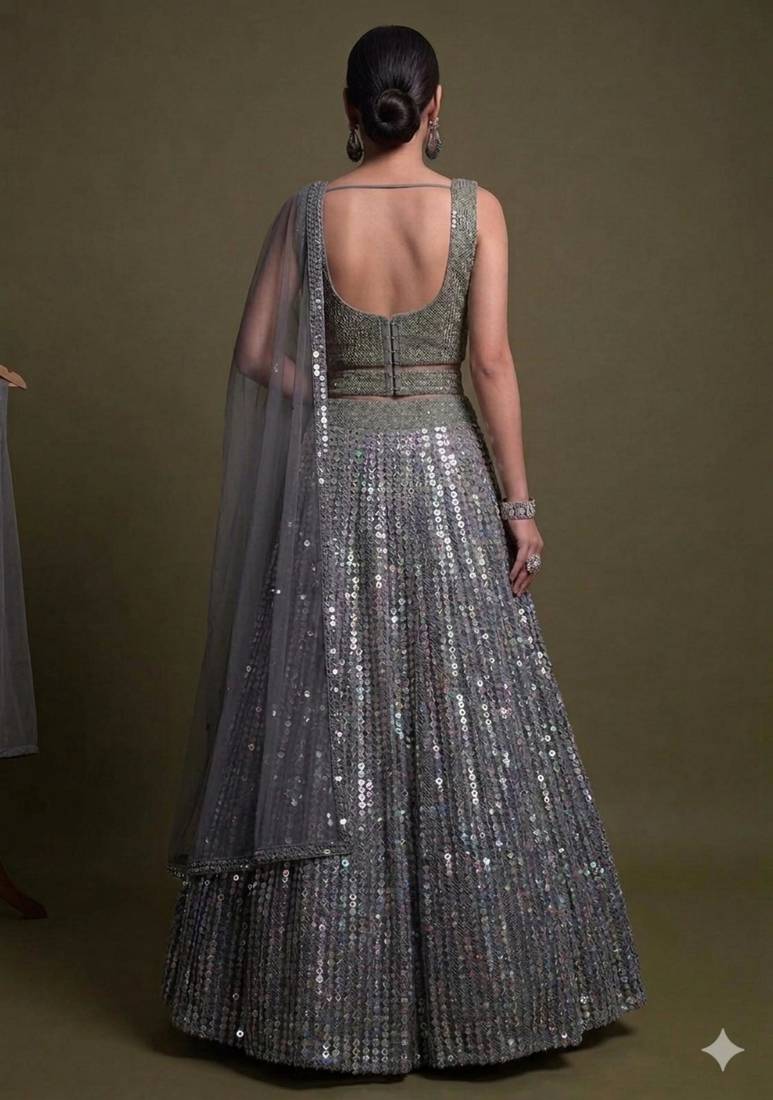 Elegant grey heavy sequin embroidered a-line lehenga with sweetheart neck blouse