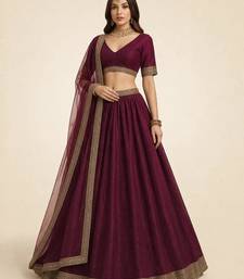 | Product Description | Step Into Grace With This Deep Maroon A Line Lehenga, Featuring A Sophisticated Self Weave Texture Enriched With Subtle Sequin Highlights. The Ensemble Is Beautifully Finished With A Rich Embroidered Zari Border And Paired With A Matching V Neck Blouse And A Delicate Net Dupatta, Making It A Timeless Choice For Weddings And Bridesmaid Wear. |