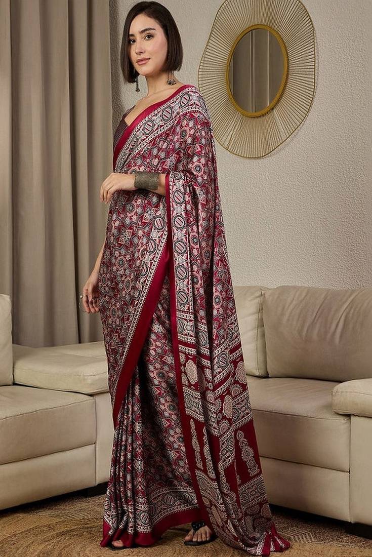 | Product Name | Ajrak Printed Pure Crepe Block Print Ready To Wear Saree With Unstitched Blouse | |