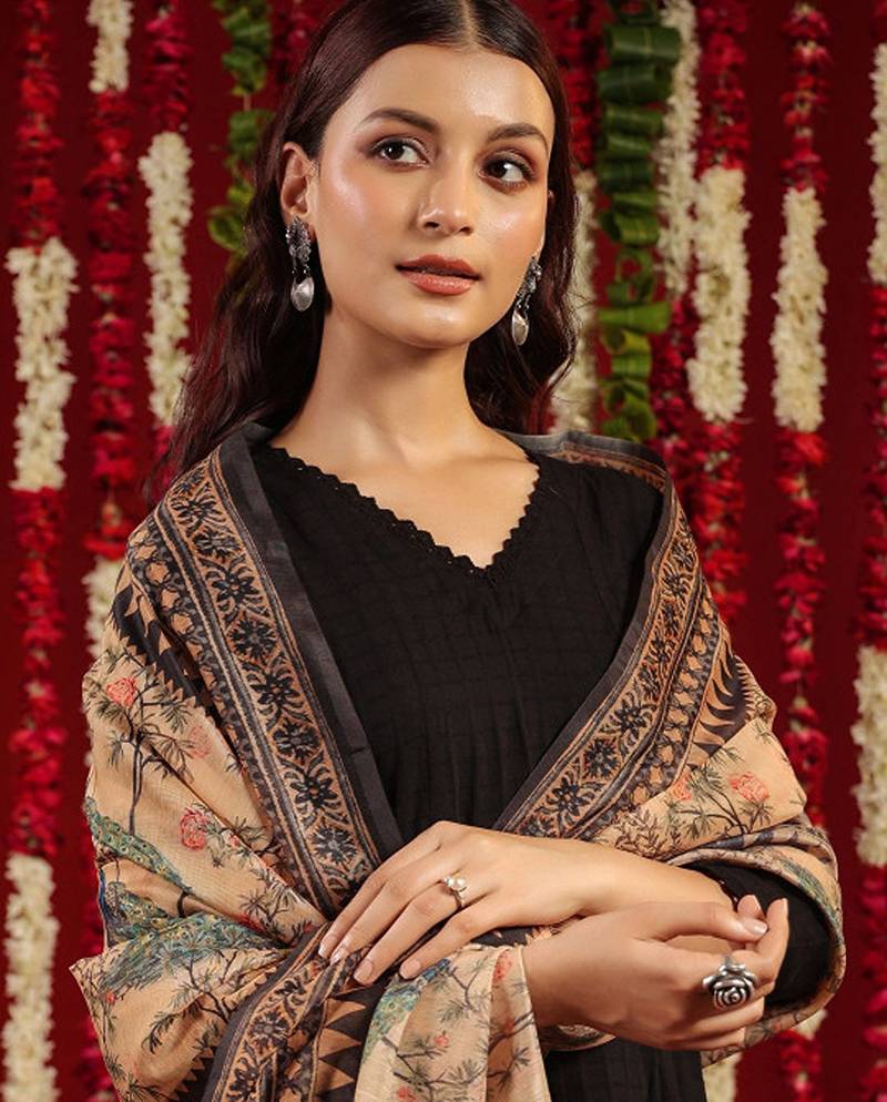| Product Description | Black & Beige Self Design Kurta With Trousers With Dupatta Kurta Design: |