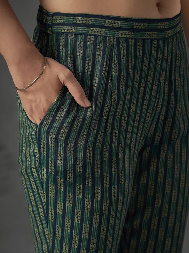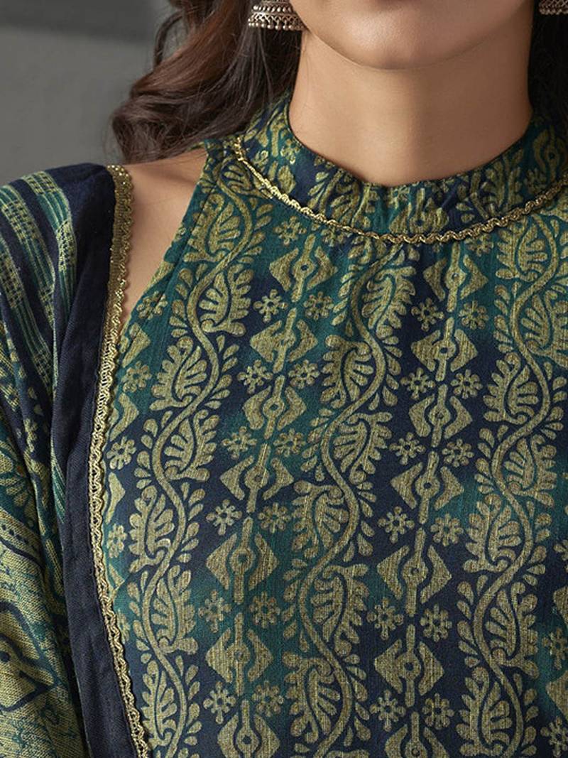 | Product Description | Blue, Gold Toned Printed Kurta With Trousers & Dupatta Kurta Design: |