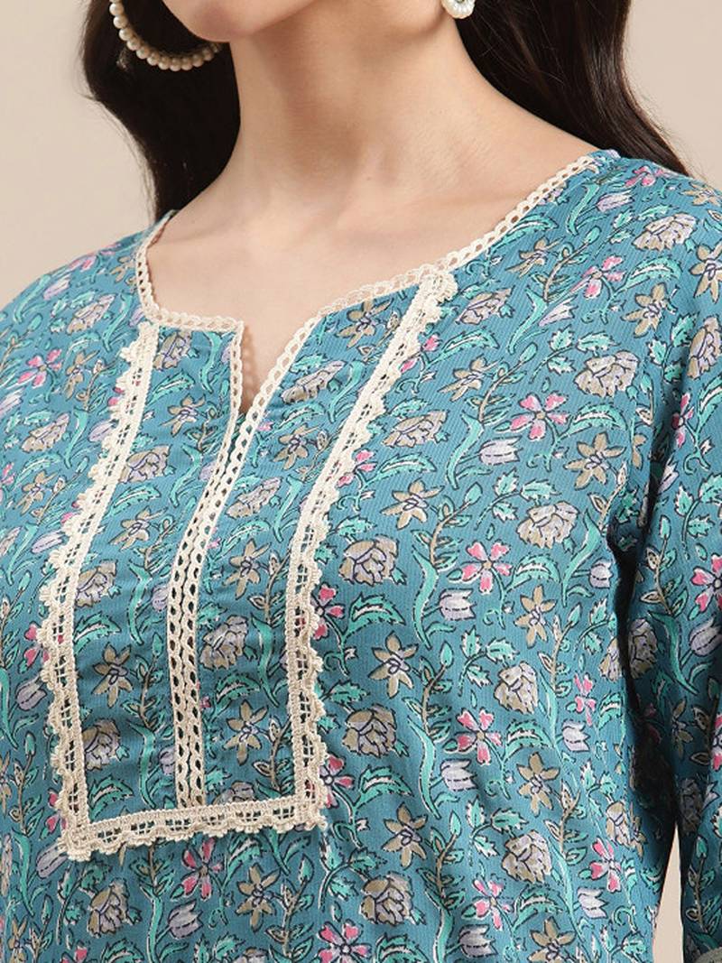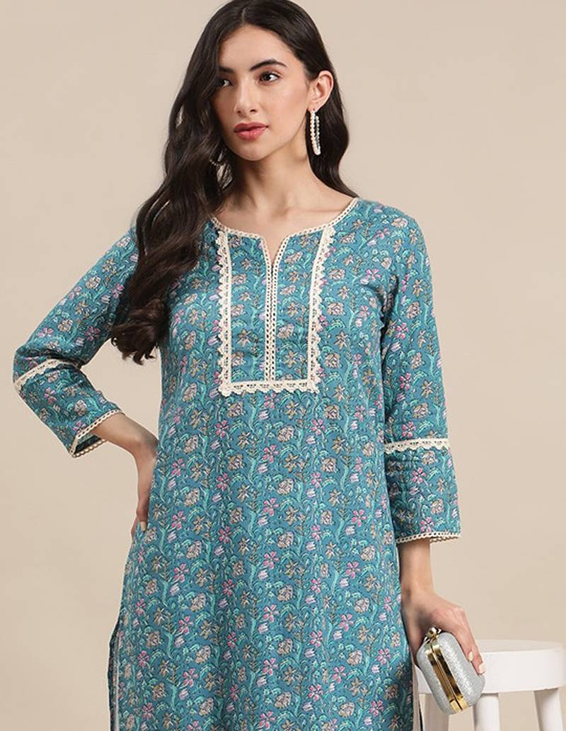 | Product Name | Blue Jaipuri Floral Print Pure Cotton Lace Detailed Kurta | |