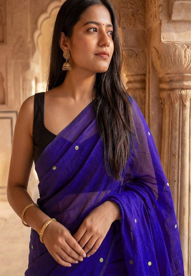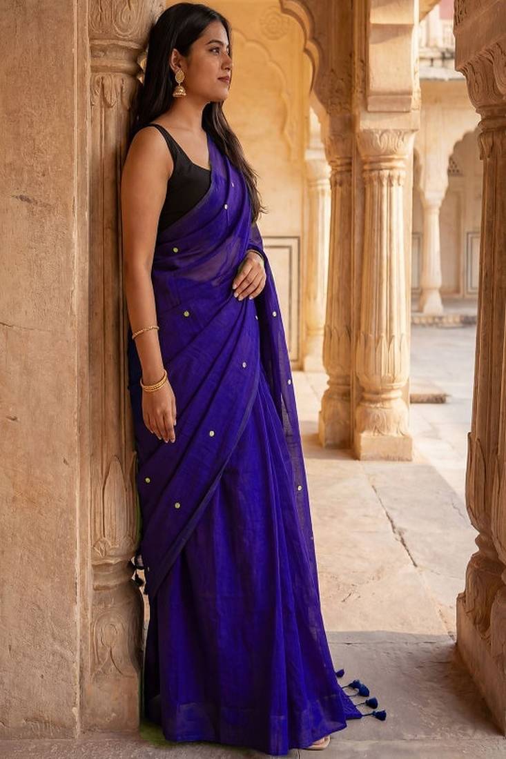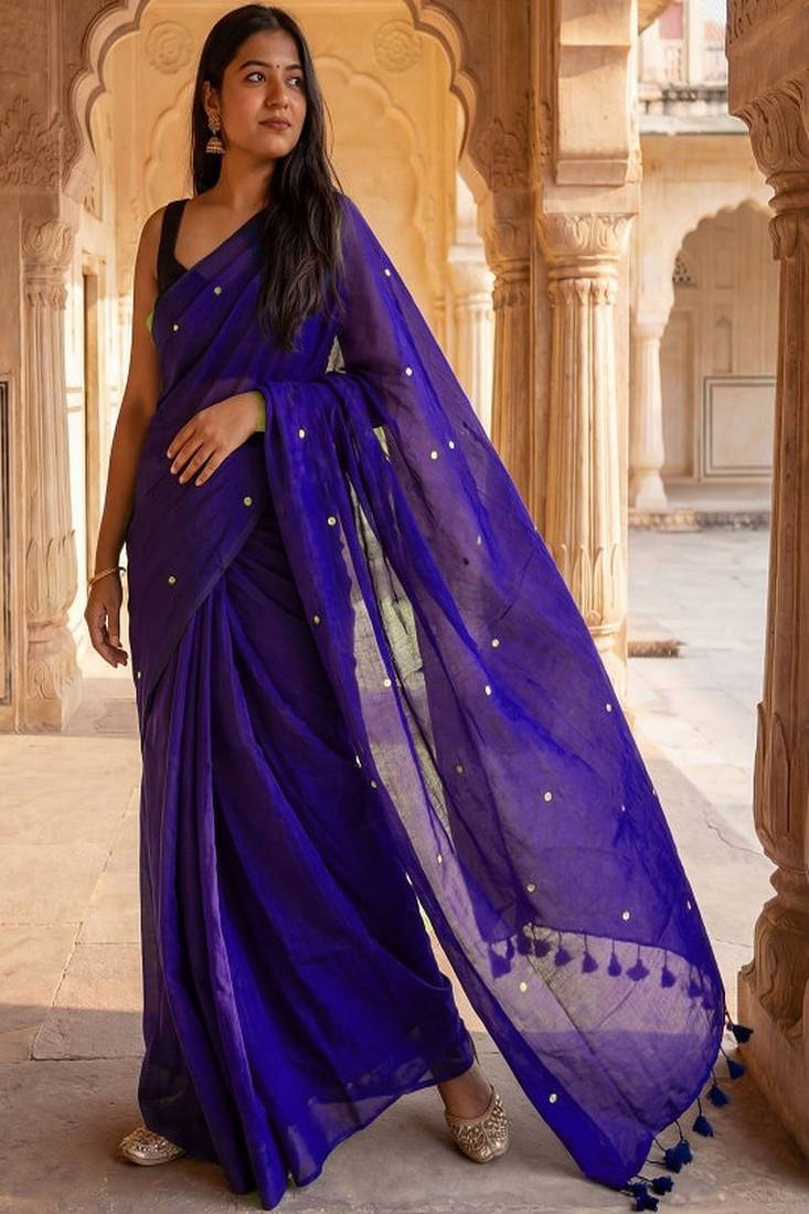 | • | Saree | : | Color- Purple / Fabric- Pure Cotton |