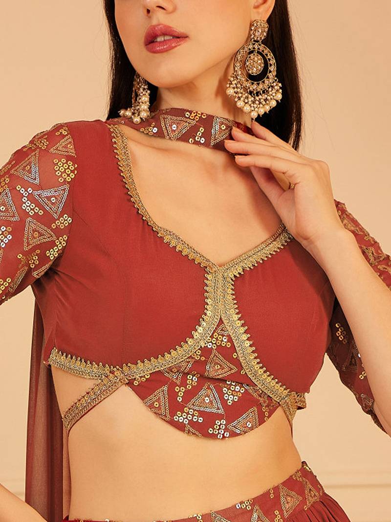 Embellished sequinned ready to wear lehenga & blouse with dupatta free size upto 42